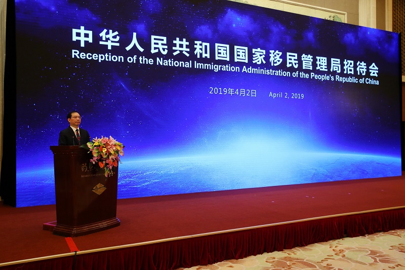 The National Immigration Administration (NIA) held a reception in Beijing on April 2, 2019, in celebration of the first anniversary of its establishment. Xu Ganlu, vice minister of Public Security and administrator of NIA, attended and addressed the reception. The reception was moderated by vice administrator Li Yulu. Vice administrators Yin Chengji, Qu Yunhai and Zhao Changhua attended the event.