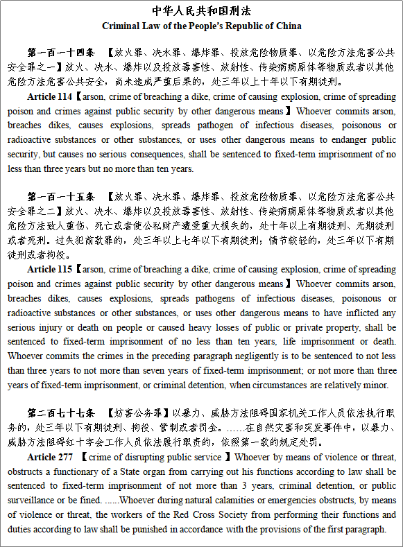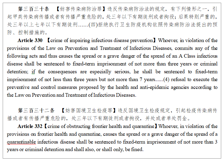 Note:The English version of the above legal provisions is from the official websites of the Supreme People's Court of PRC, the Ministry of Foreign Affairs of PRC, the National Health Commission of the PRC and other government departments. Parts of the quote are from the www.pkulaw.cn.