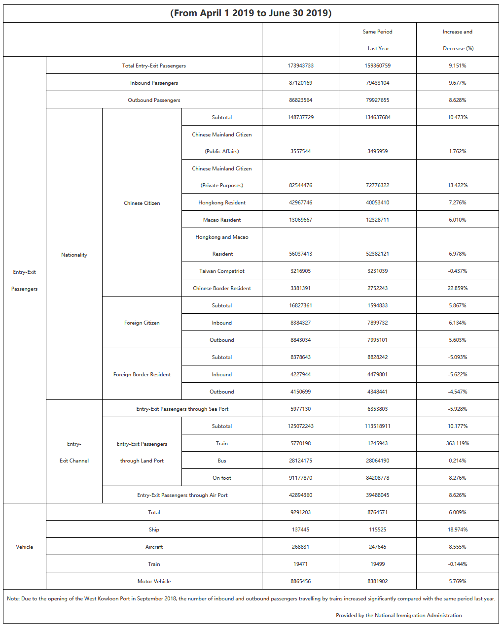 Comprehensive Statistics on Entry-Exit Frontier Inspection (Q2, 2019)