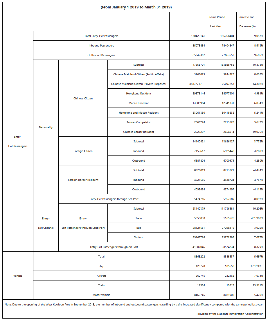 • Comprehensive Statistics on Entry-Exit Frontier Inspection (Q1, 2019)
