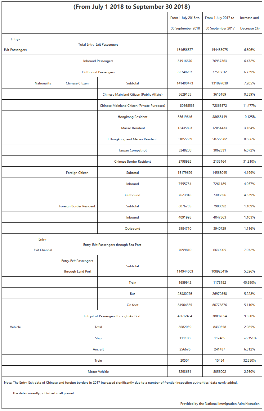• Comprehensive Statistics on Entry-Exit Frontier Inspection (Q3, 2018)